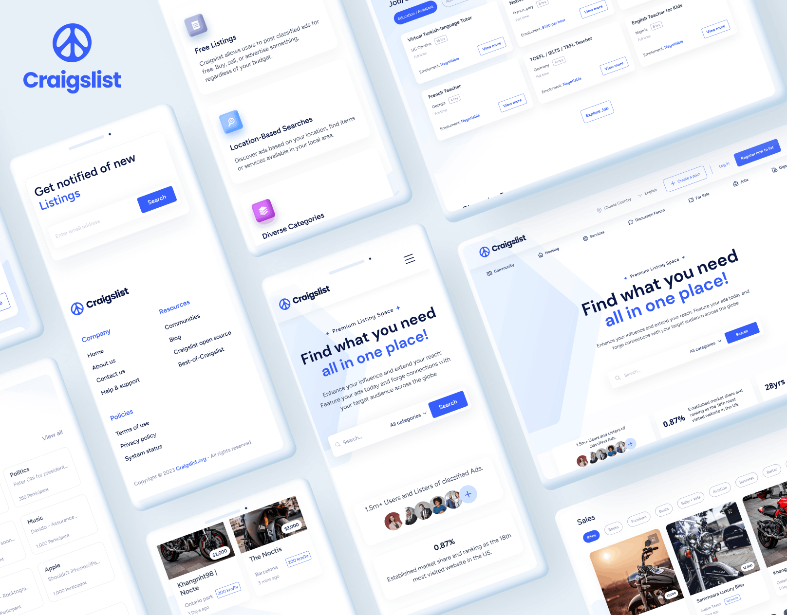 The Craiglist website Redesign features a clean, modern interface with improved navigation and enhanced search functionality. It offers a streamlined, user-friendly experience with intuitive layouts and responsive design, making it easy to navigate.